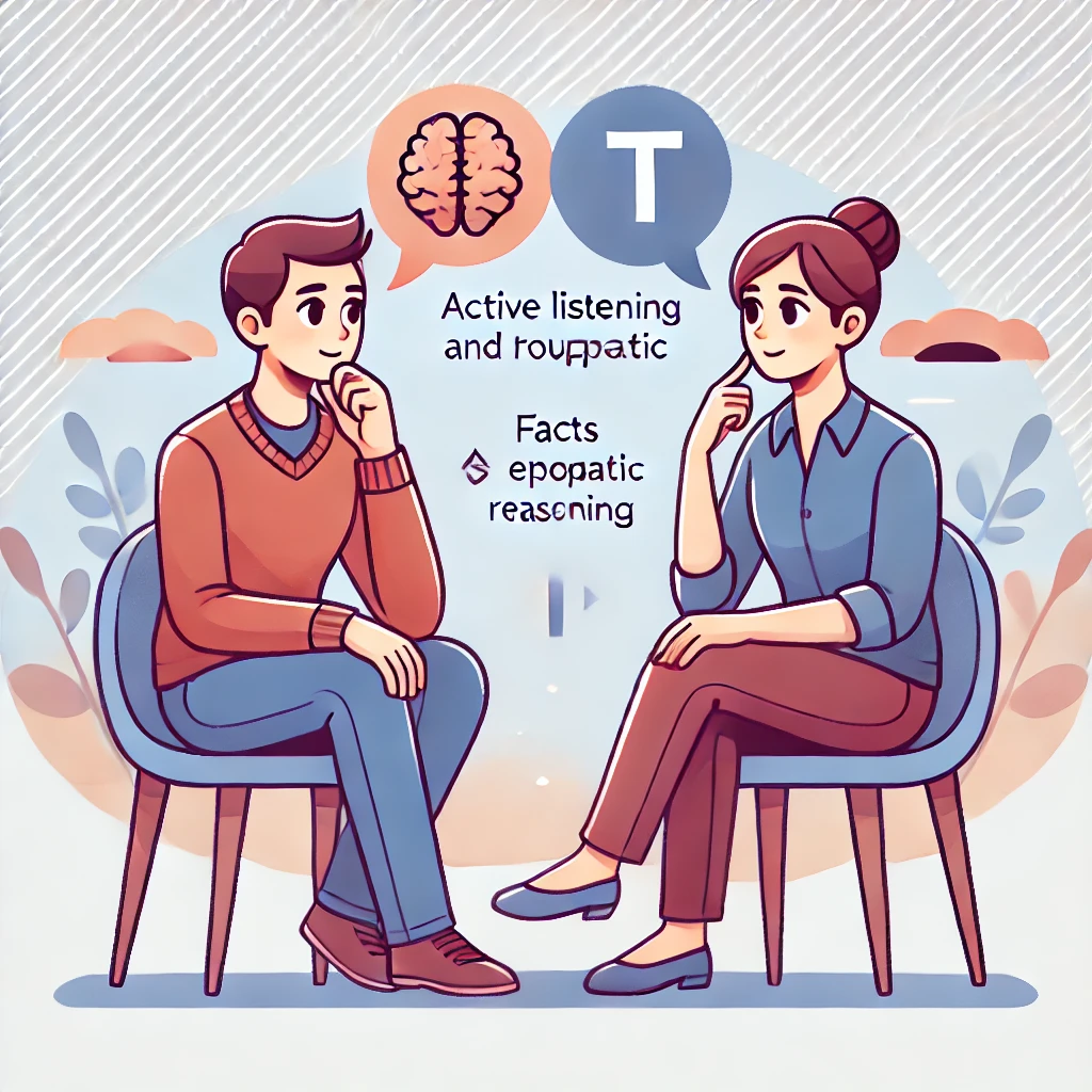 T 성향의 사람은 상대의 말에 집중하고 비언어적 신호(표정, 제스처 등)를 통해 상대의 감정을 파악합니다. 이는 상대방이 진심으로 이해받고 있다는 느낌을 주는 데 중요합니다.